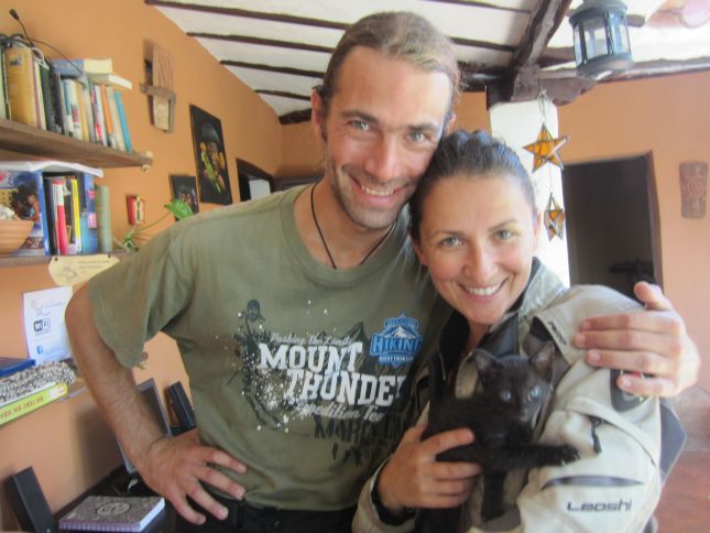 We make another friend at Casa del Mono. One morning we make up to a retching sound coming from somewhere close by – we cannot identify it, but it’s something between a small baby’s screams and a terrible cough. We trace the sound back to right below our bed – from a tiny little kitten. Adriana saved this little one from a couple of dogs somewhere in the street and brought it home, and here it is under our bed, lonely and terrified. We take care of it and by the time we move on it’s actually quite happy in its new home. However we cannot say the same for Mussolini, the other cat who lives here.